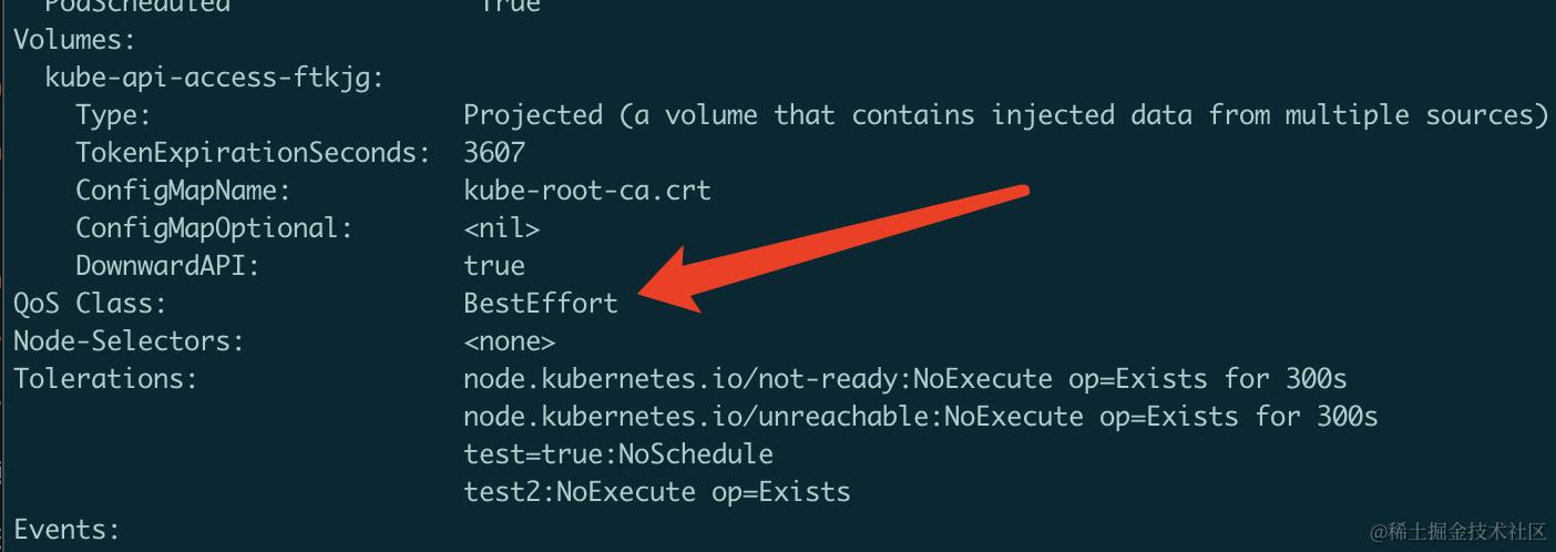 这个Pod因为没有设置request和limit,所以QOS=BestEffort