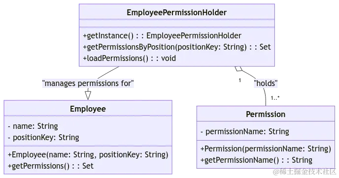 EmployeePermissionHolder中集中管理,便于维护和更新。 - 权限一致性:确保所有员工的权限信息是一致的,避免权限管理上的混乱。