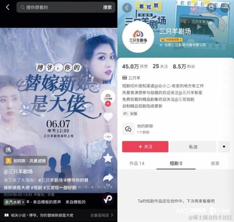 以小杨哥制作的首部短剧为例,该剧上线后,口碑扑街且市场表现不佳。更糟糕的是,6月28日,这部短剧已经从抖音的三只羊剧场号以及爱奇艺中消失。
