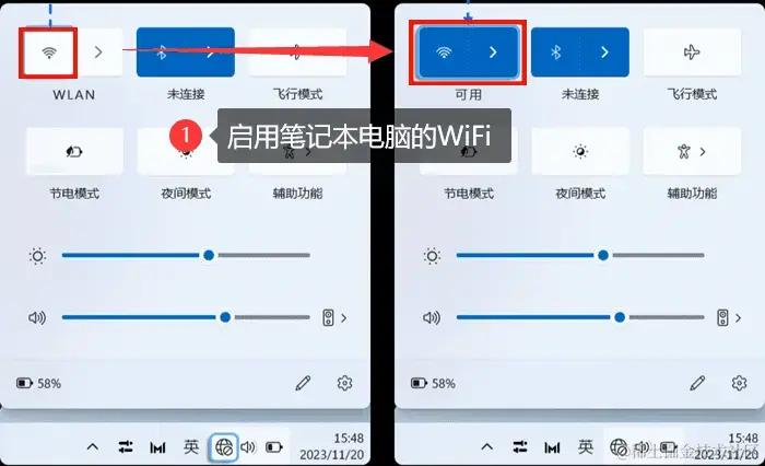 步骤1:确保你的笔记本电脑的wifi功能已经开启。