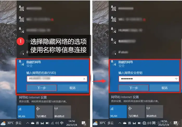注意:由于隐藏网络的特殊性,我们在连接时要确保输入的名称和密码完全正确,否则无法成功连接。