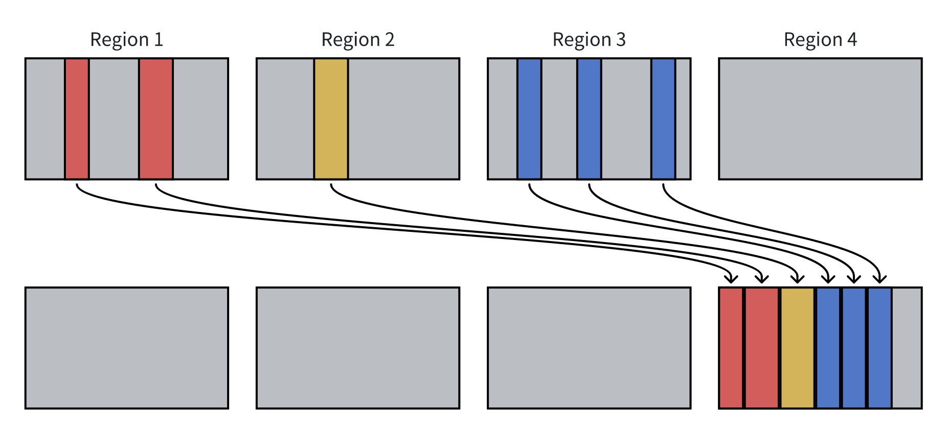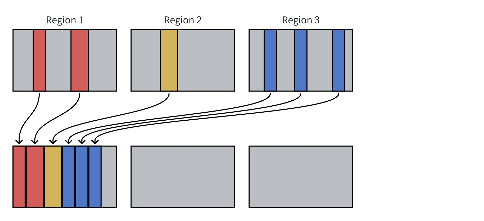 非就地迁移:ZGC 的首选迁移方法,当存在空区域可用时,ZGC 会执行非就地迁移。非就地迁移的示例如下: