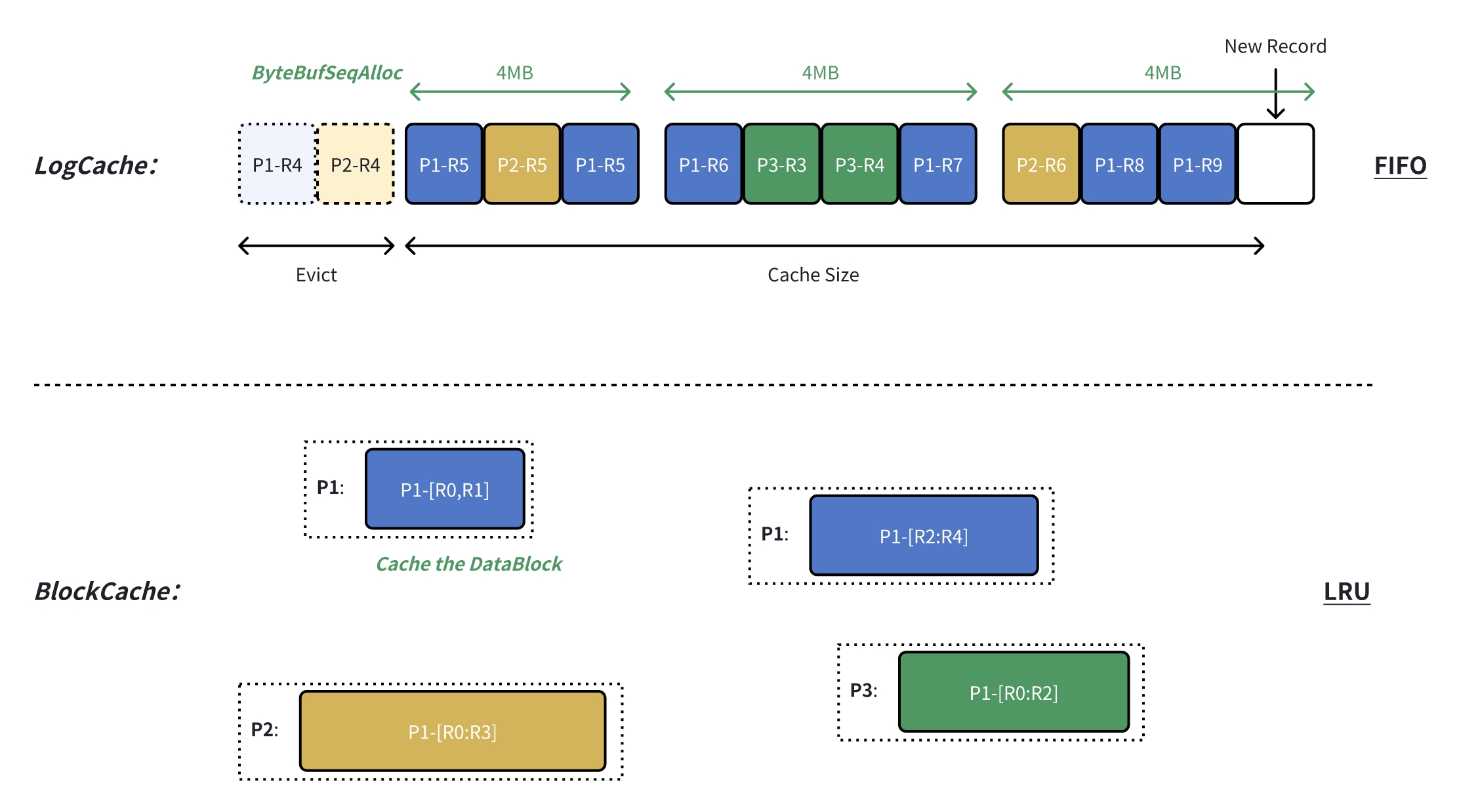 FIFO:针对追尾读持续访问新数据的特点,LogCache 采用先入先出的缓存驱逐策略,优先保证新数据缓存的可用性;
