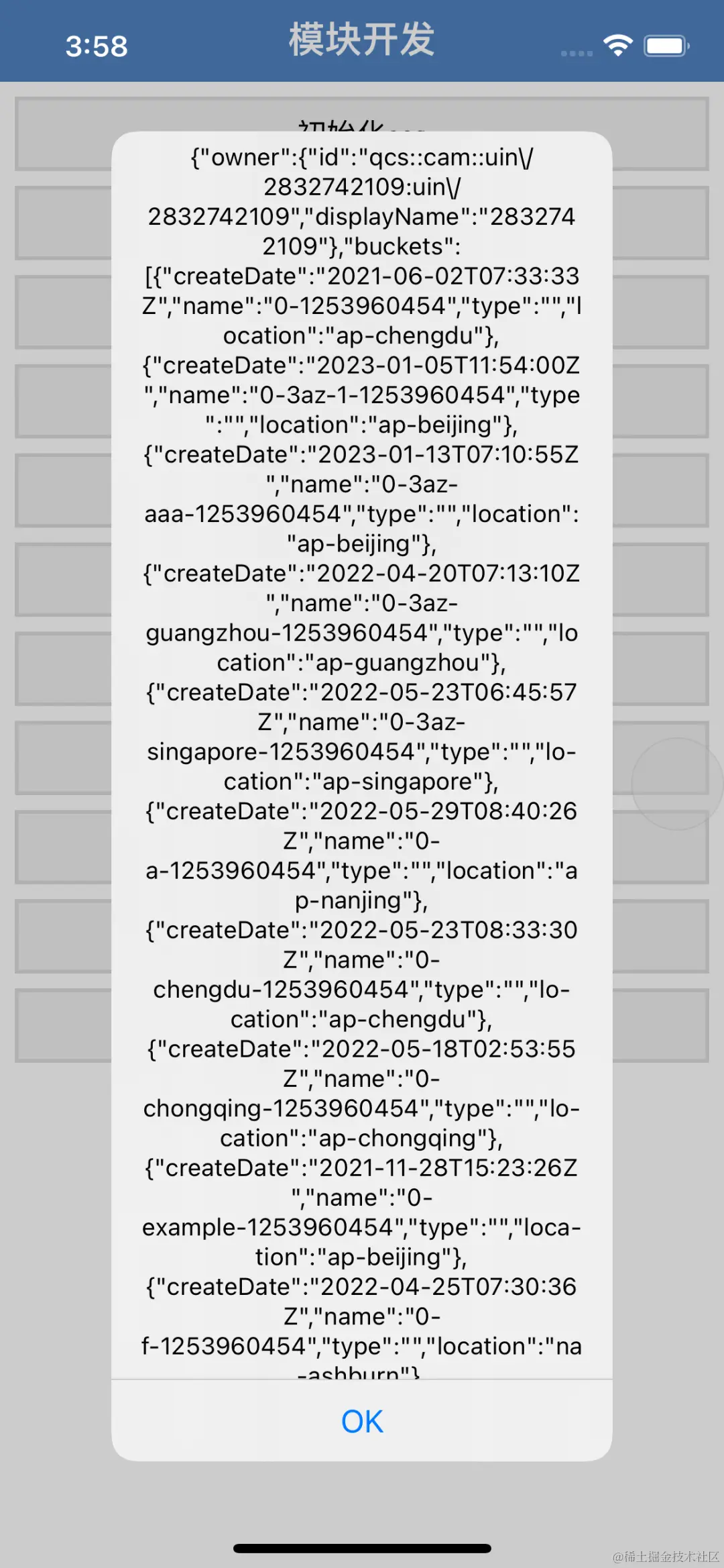 目前主要提供的功能包括存储桶相关操作、文件相关操作接口。下面展示一下使用cosClient进行获取存储桶列表的功能。