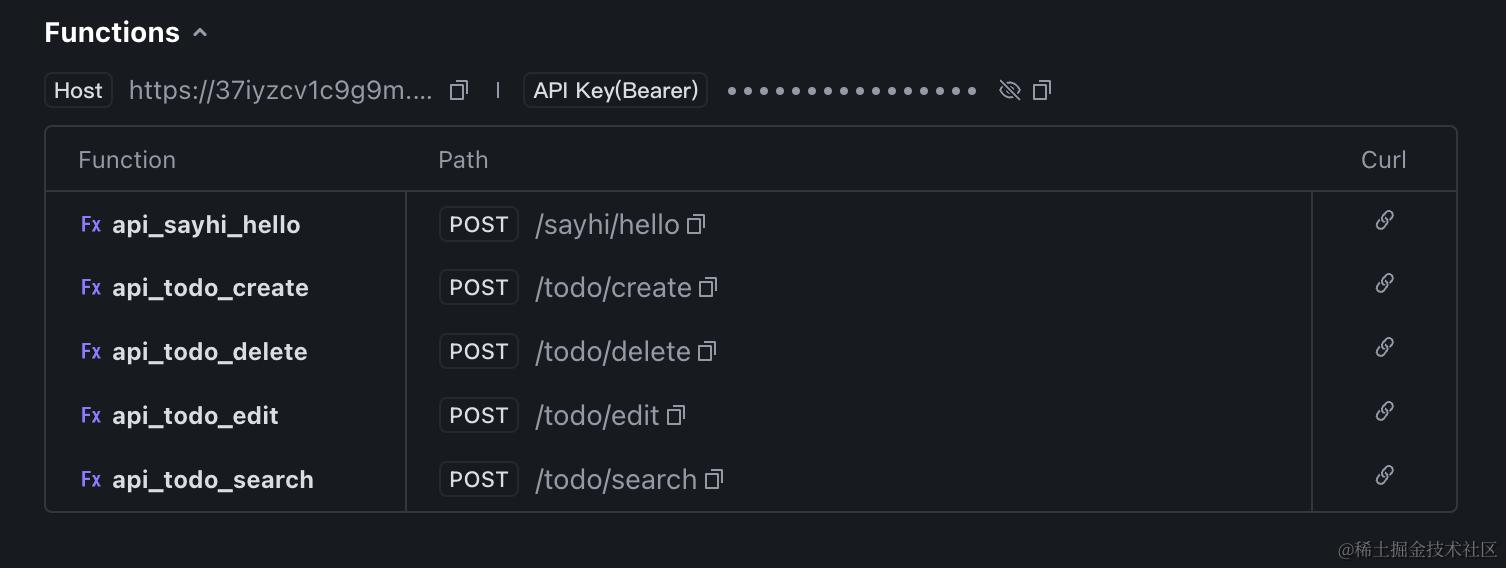 有了 Server,自然就有 IP 和端口,这里 Functions 下面的 HOST 就是默认给的域名。