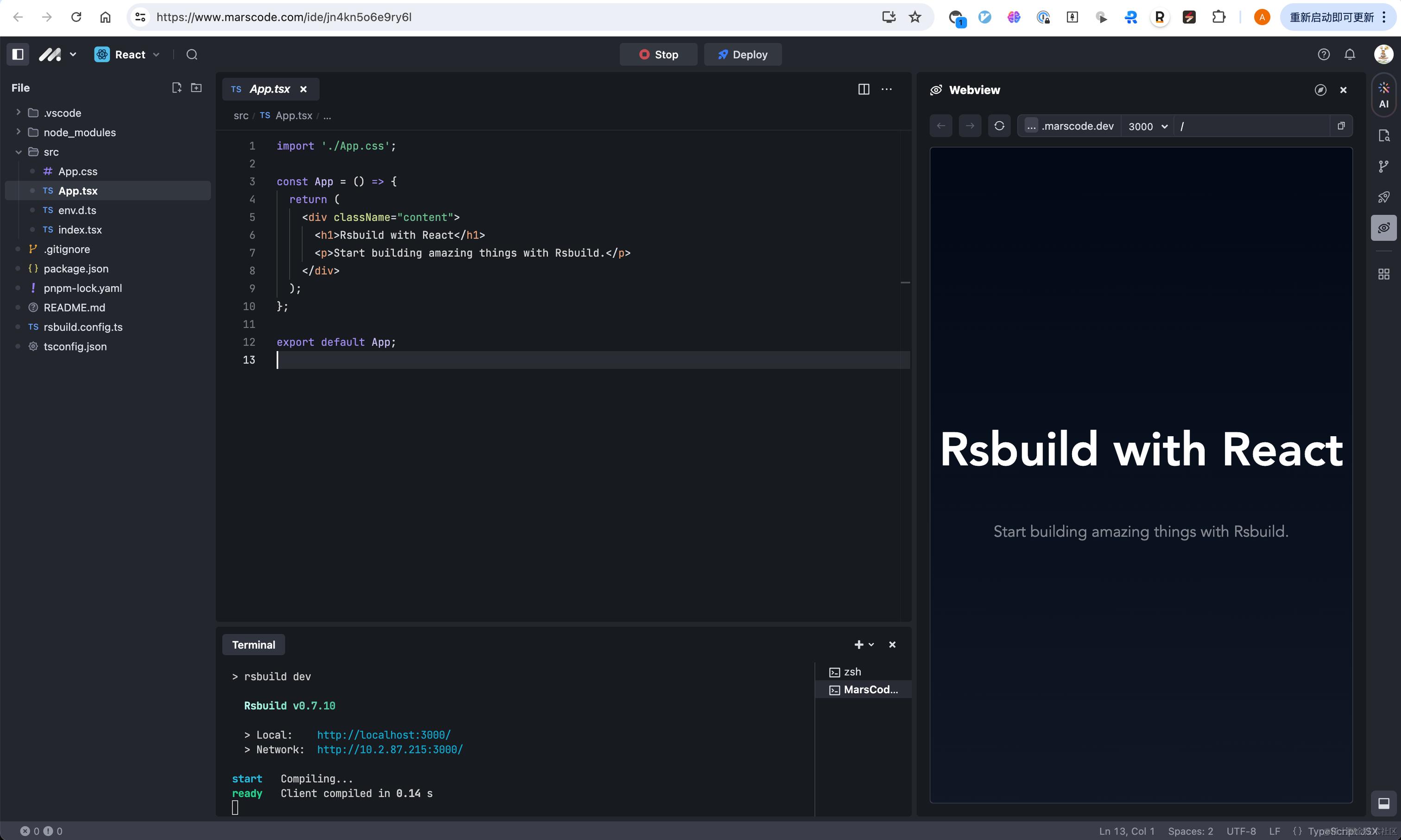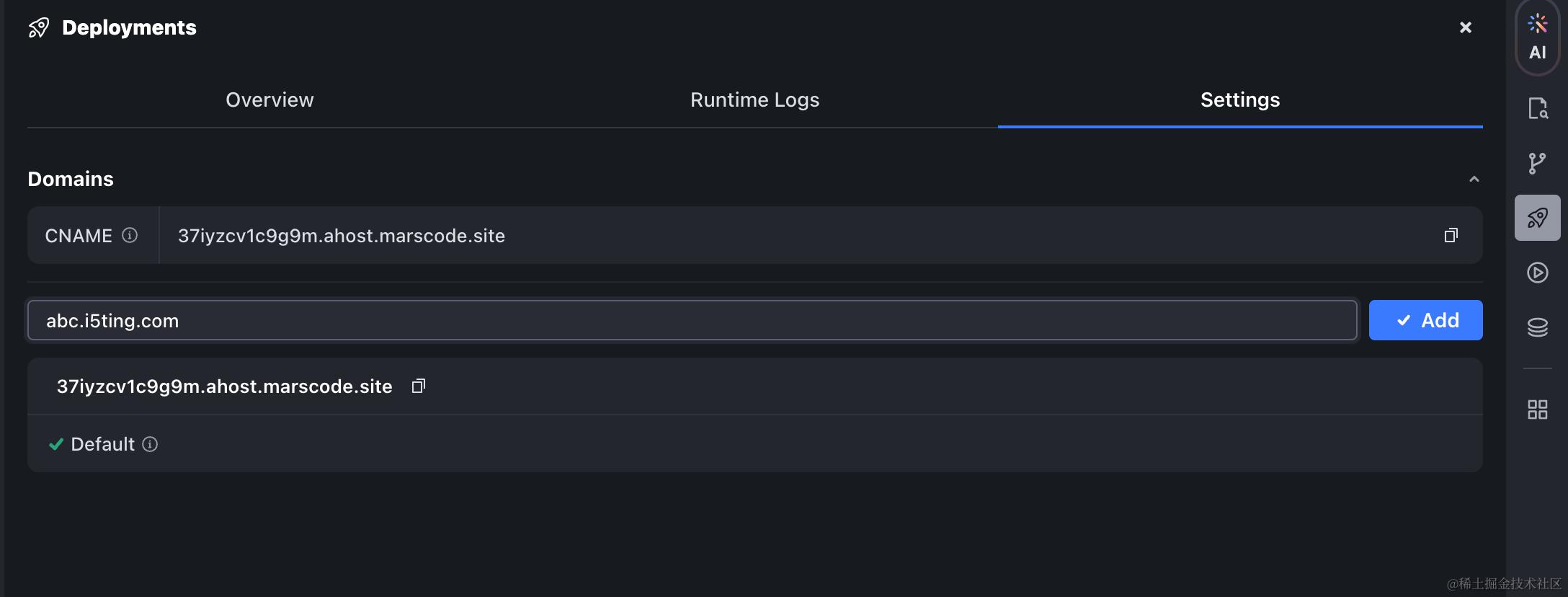你只需要点击上面的 Deploy 按钮即可,然后 MarsCode 就会帮你自动完成发布。