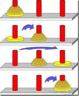 - 对于从1到N(N表示盘子的数量)的每一个数字i,执行以下循环: a. 如果i是偶数,则将柱子B视为目标柱子,柱子C视为中转柱子; b. 如果i是奇数,则将柱子C视为目标柱子,柱子B视为中转柱子; c. 在当前的循环中,将柱子A上的最小的i个盘子移动到目标柱子上,中间使用中转柱子; d. 更新柱子A上的盘子数量。
