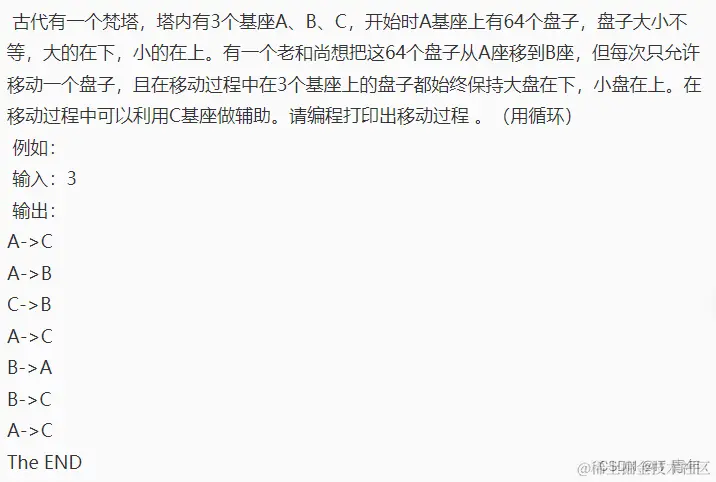 - 循环结束后,所有的盘子都移动到了目标柱子上。