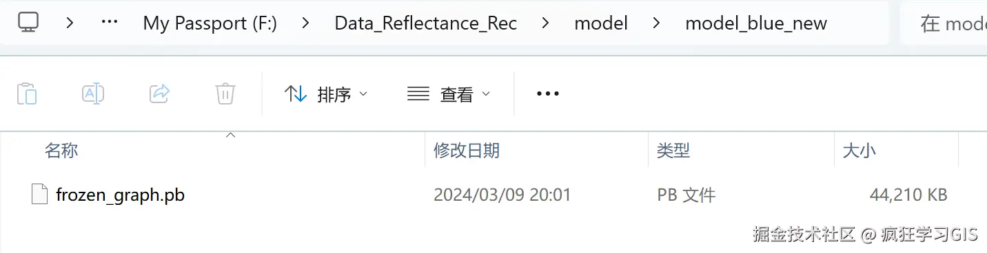 执行上述代码,在结果文件夹中,我们将看到1个.pb格式的神经网络模型结果文件,如下图所示。