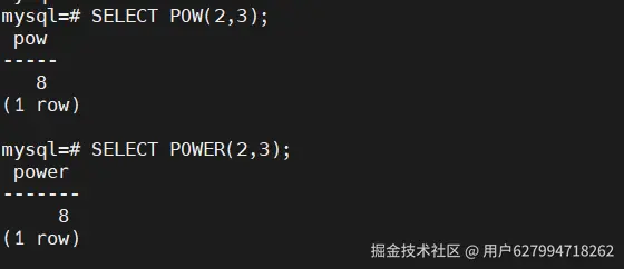 POW(x,y)/POWER(x,y)返回 x 的 y 次方