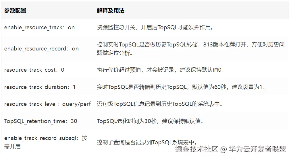 开启TopSQL功能必须要确保如下参数设置(下列参数为开启TopSQL功能的必要条件):