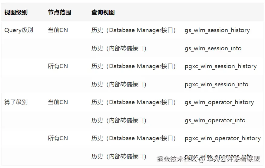 - 增删改查,包括使用explain analyze和explain performance来执行的场景。query级别视图还额外支持create table as语法。