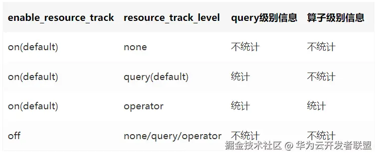 enable_resource_track为系统级参数,用于设置是否开启资源监控功能。