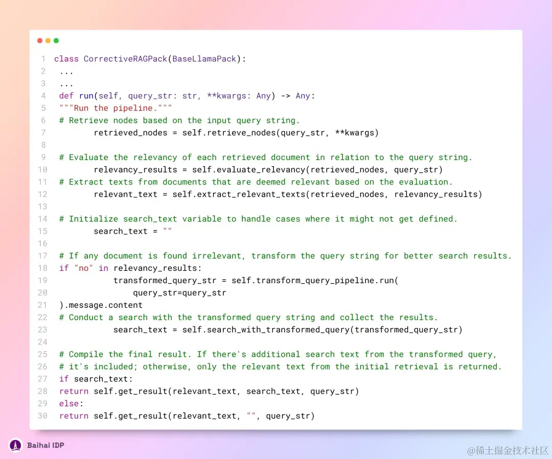 要了解测试代码,需要深入剖析 corrective_rag.run() 方法的实现细节,接下来让我们一探究竟。