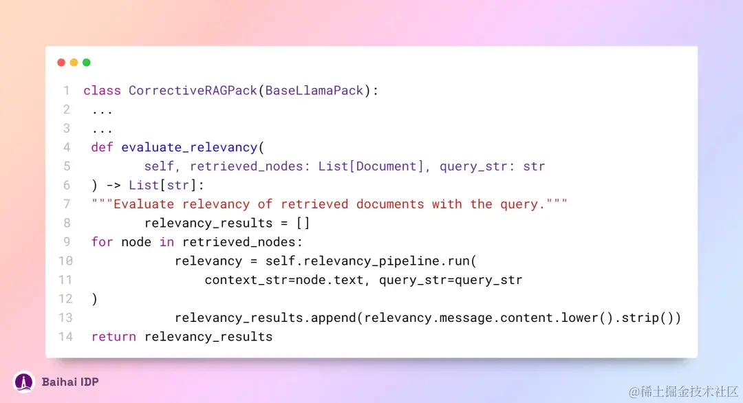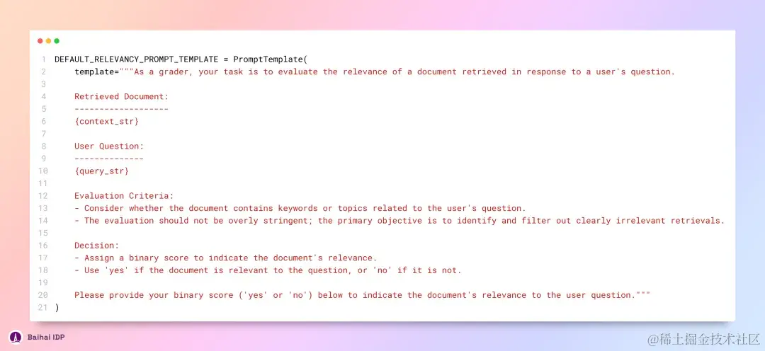 上述代码与 CRAG 的标准流程相比,有三点显著不同之处: