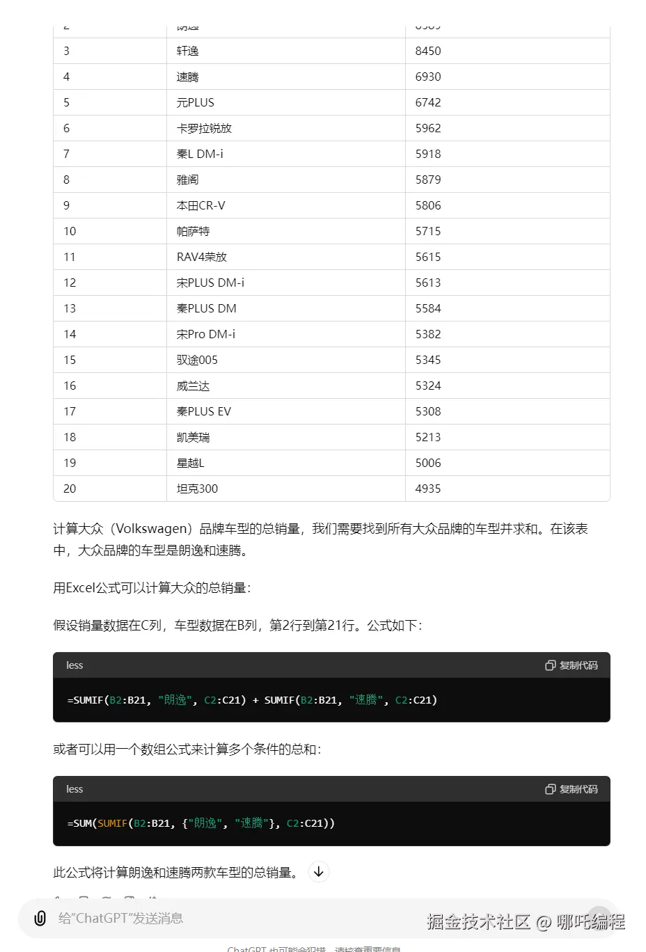Prompt:识别图中文字,将其制作成表格,用什么公司可以计算大众的总销量