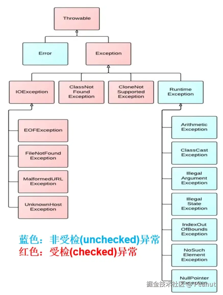 - 如ClassNotFoundException(类找不到),IOException(IO相关) ,SQLException(sql异常)