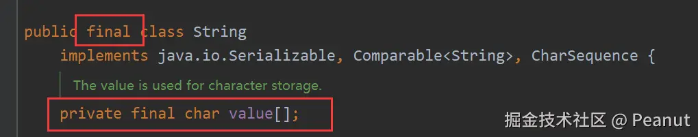 - 首先final修饰的变量,如果是引用类型(char[]),则不能指向其他对象。