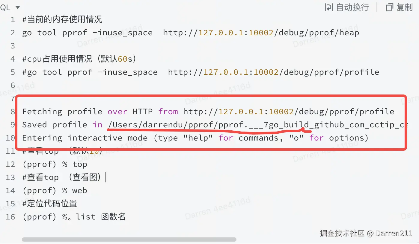 (pprof) %。list 函数名