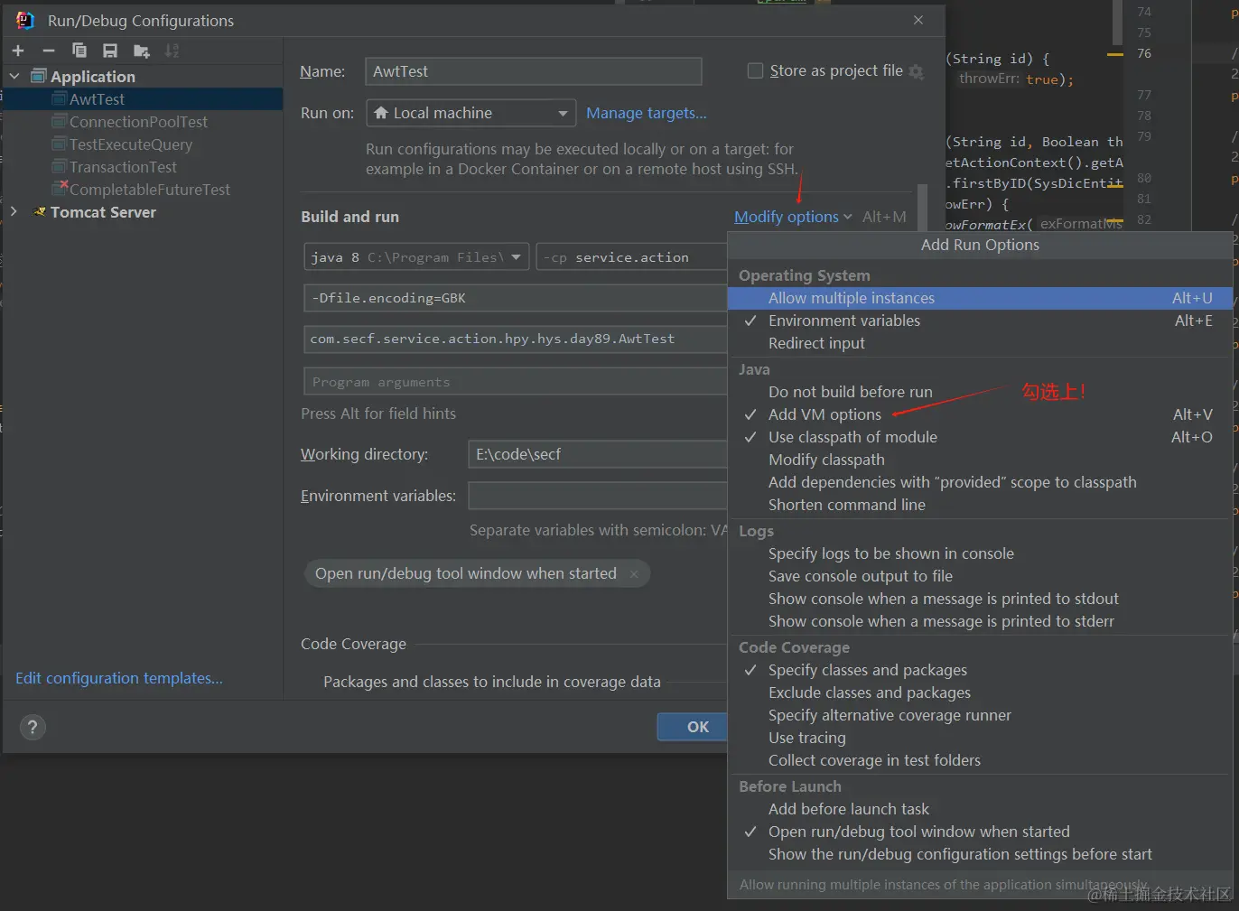 3、我们在其弹框中,把【Add VM options】勾选上。