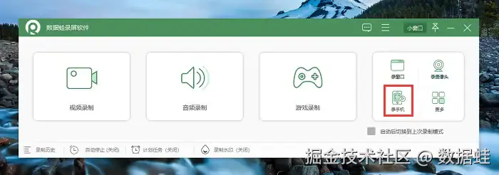 第1步:用户可以在浏览器搜索“数据 蛙录屏”,下载并安装软件。启动软件后,选择合适的录屏模式,如 “视频录制”、“手机录制” 等。