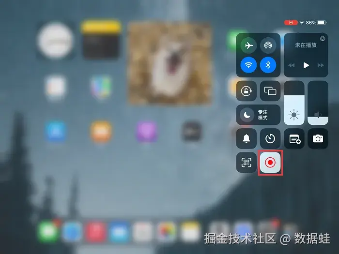 第2步:从iPad底部向上滑动,打开控制中心,然后点击“屏幕录制”按钮(圆圈中带有个小白点的红色按钮)。此时,iPad将开始录制屏幕,录制时长不受限制。