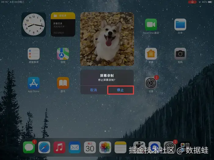第3步:要停止录制时,只需再次点击 “屏幕录制” 按钮,录制好的视频将自动保存到“照片”应用中。