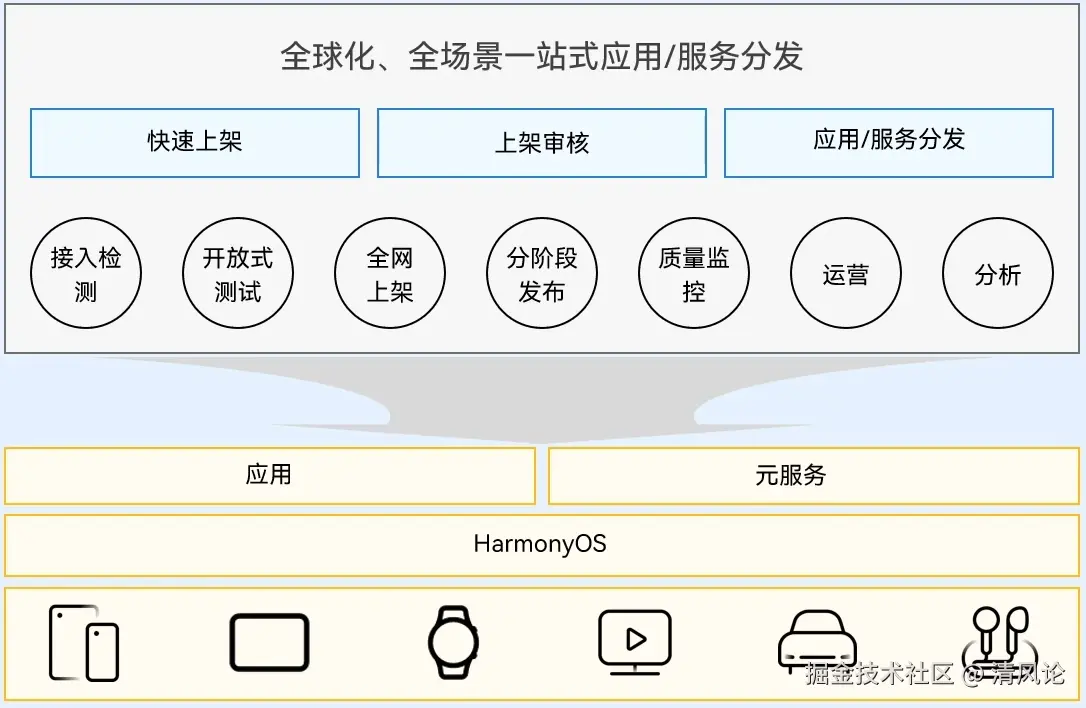 上架审核 : 是指为了给用户提供更安全且出色的体验,HUAWEI AppGallery Connect对开发者提交的 HarmonyOS 生态应用语言服务进行审核与测试。应用与服务分发是指 HUAWEI AppGallery Connect 提供了灵活的分发能力,支持按阶段、维度、场景等多种形式,高效精准的分发到用户设备上。
