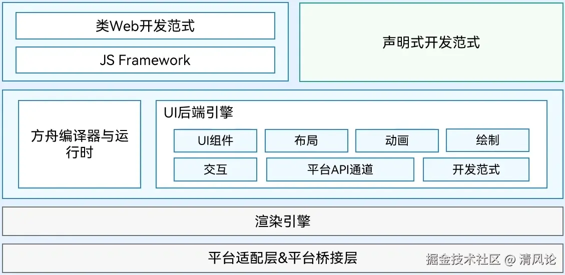 HarmonyOS 支持业界主流跨平台开发框架,通过多层次的开放能力,提供统一接入标准,实现三方框架快速接入主流跨平台开发框架,已有版本正在适配HarmonyOS ,基于这些框架开发的应用可以以较低成本完成迁移。