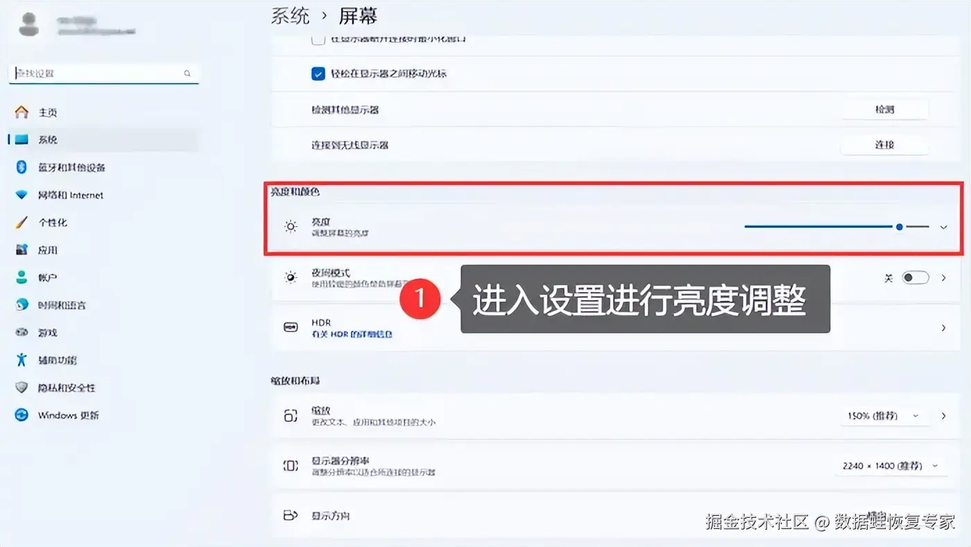 亮度调节技巧二:系统设置