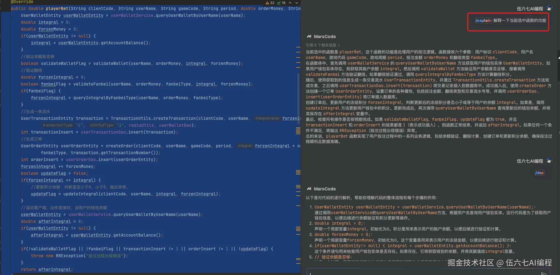 解释代码,本意是为这个方法生成方法级别注释。