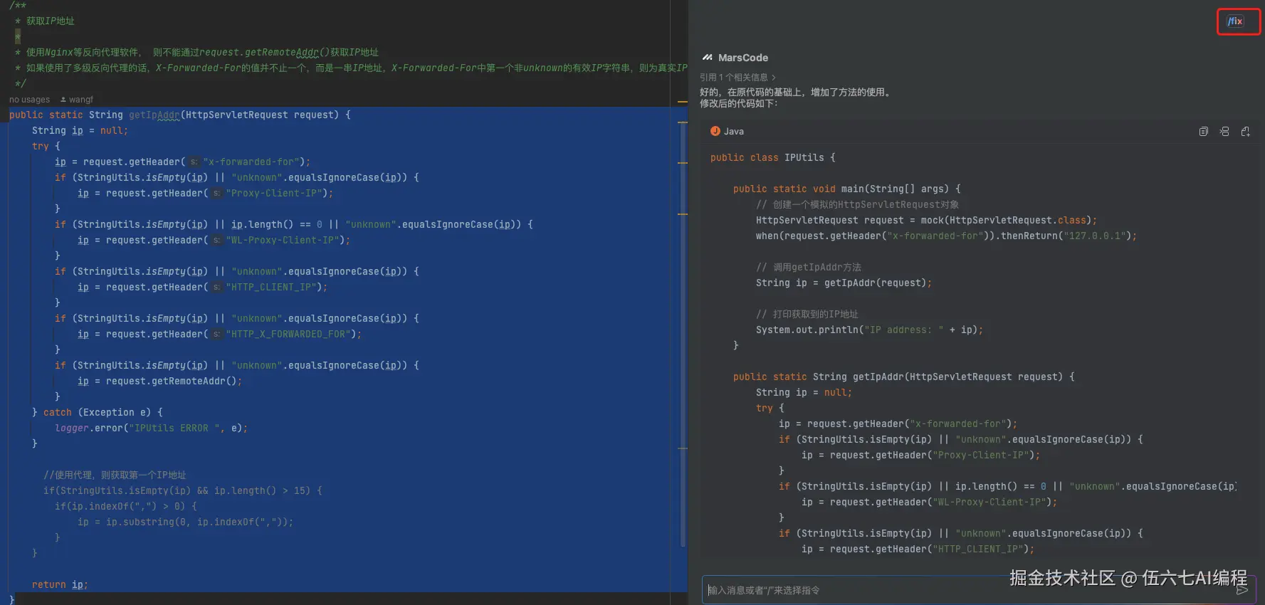 IDEA 重启之后,就能在 IDEA 右侧看到 MarsCode 了。