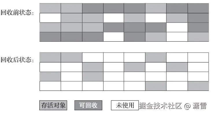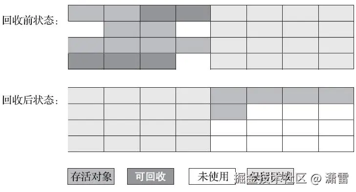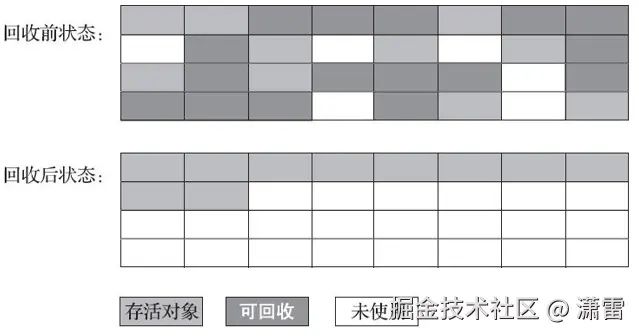 2、空间整合(整体上属于"标记-整理"算法,不会导致空间碎片)
