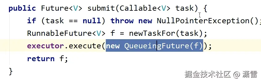 - Submit 方法可以会把队列放入到线程池的阻塞队列中。