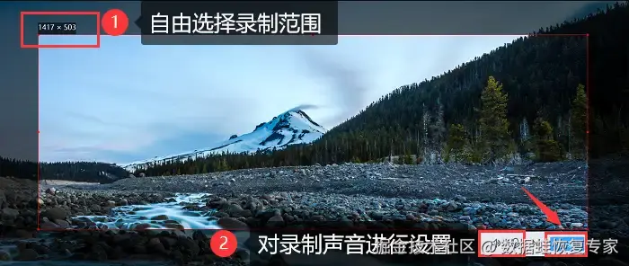 步骤2:选择录制的屏幕范围,设置好录制声音,点击右下角的 【开始录制】 按钮录制。