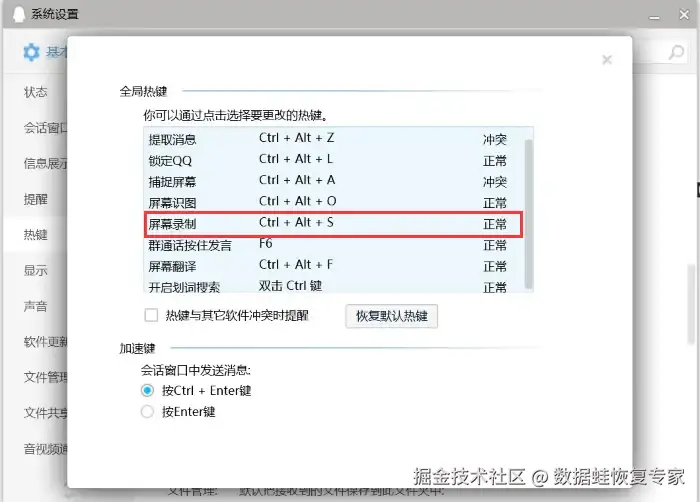 步骤1:登录电脑QQ。使用热键 【Ctrl+Alt+S】 ,打开QQ录屏。