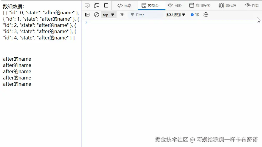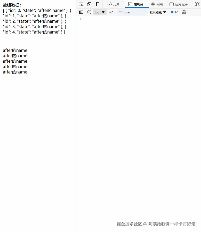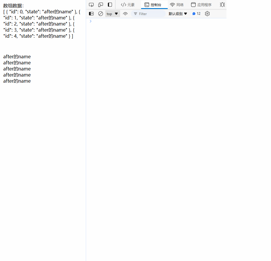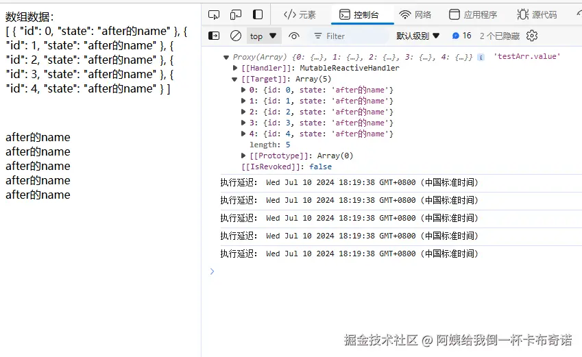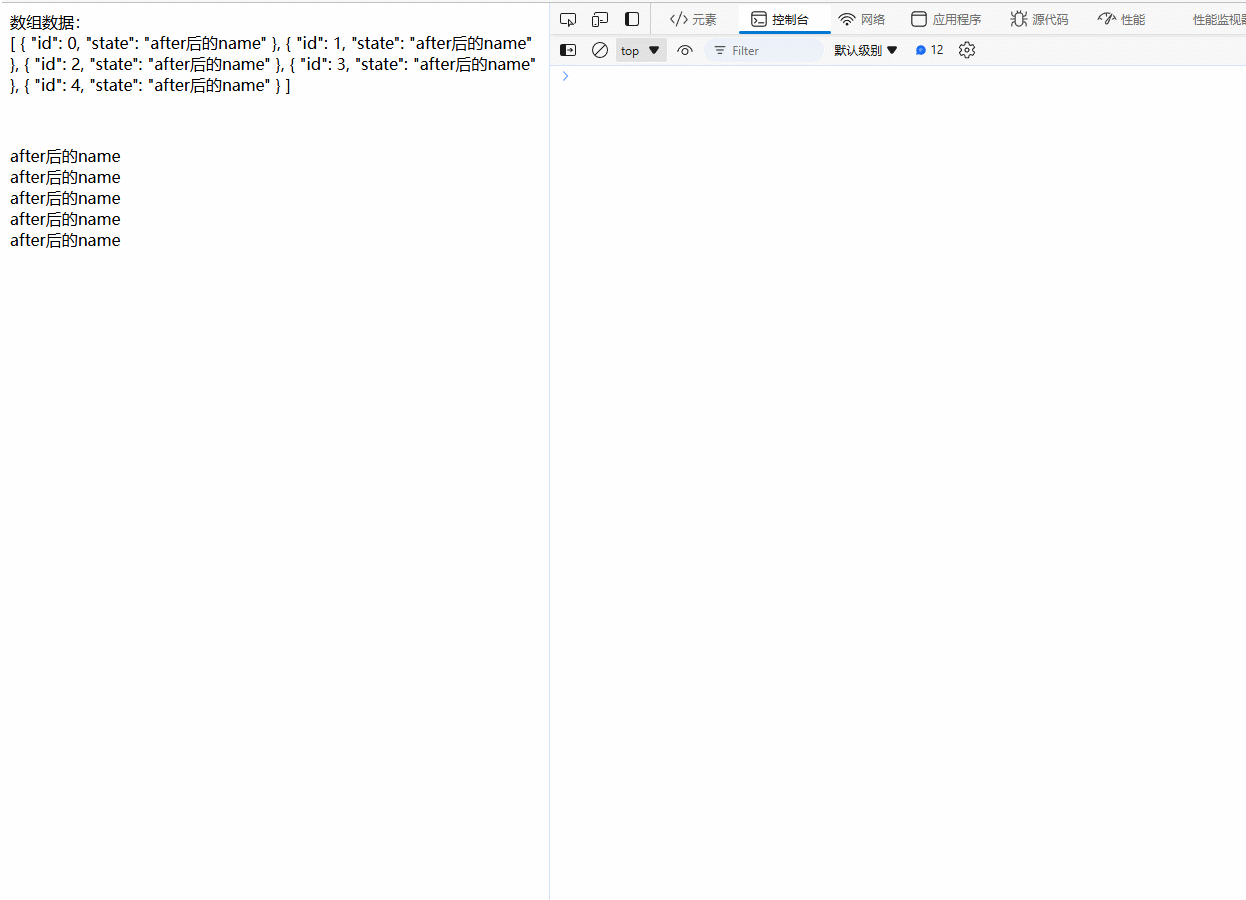 可以看到刷新页面后,在一秒延迟后数组内所有对象的 state 属性同步变化