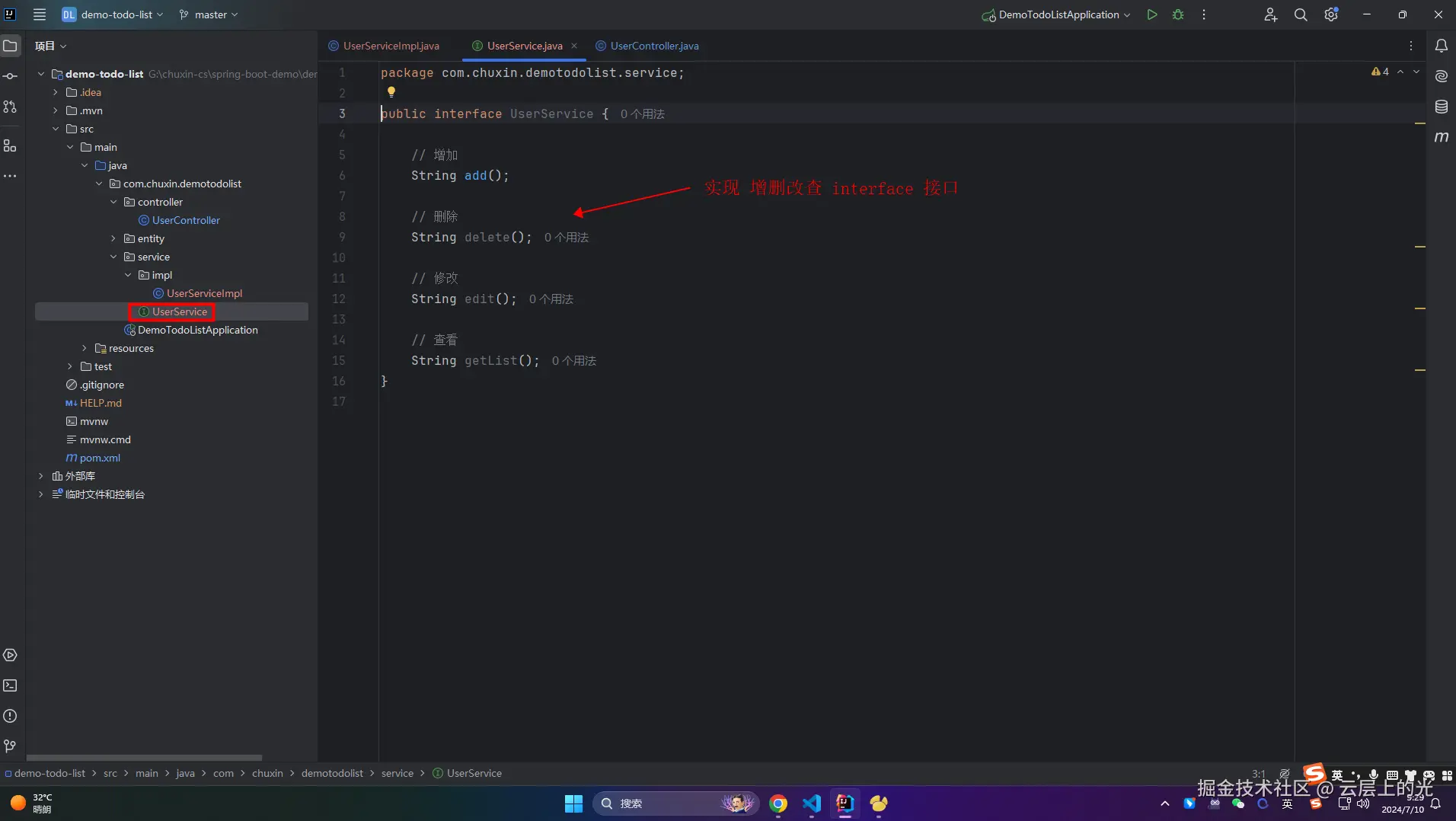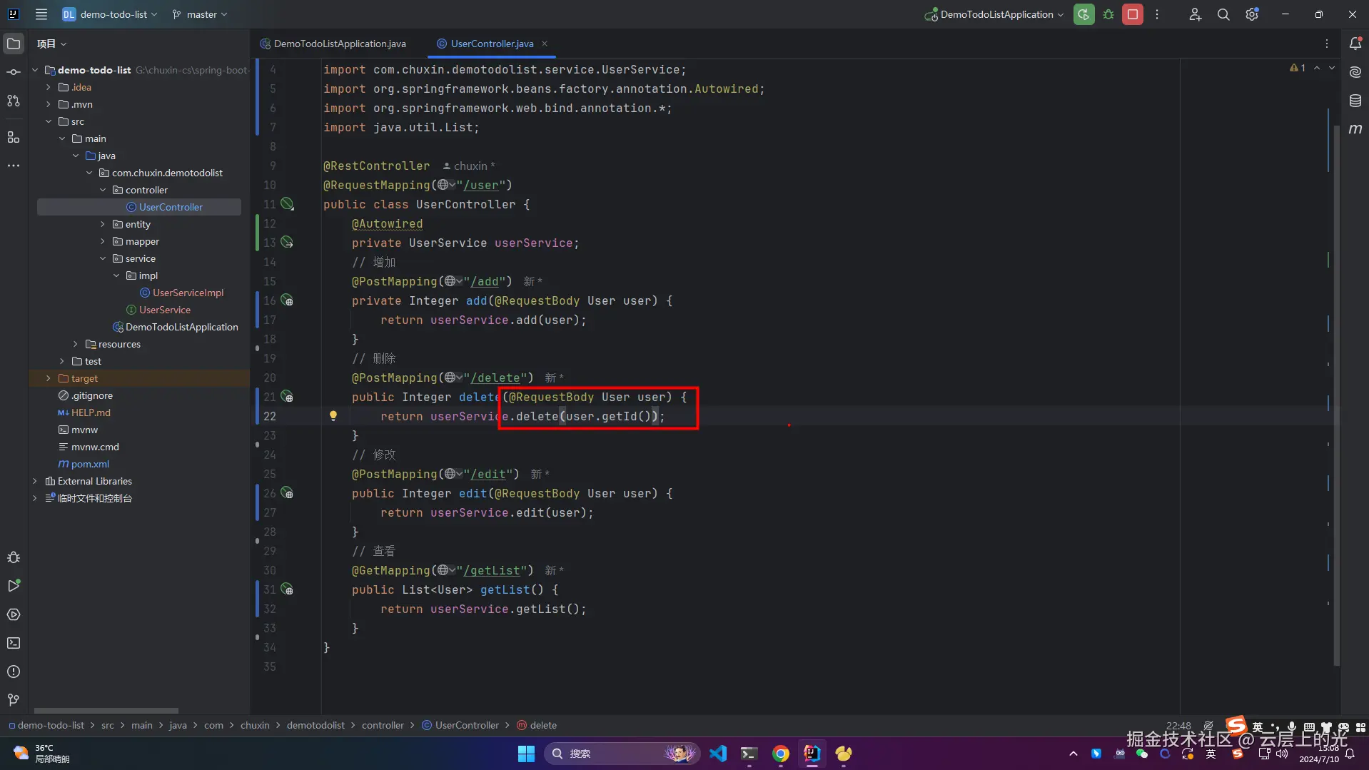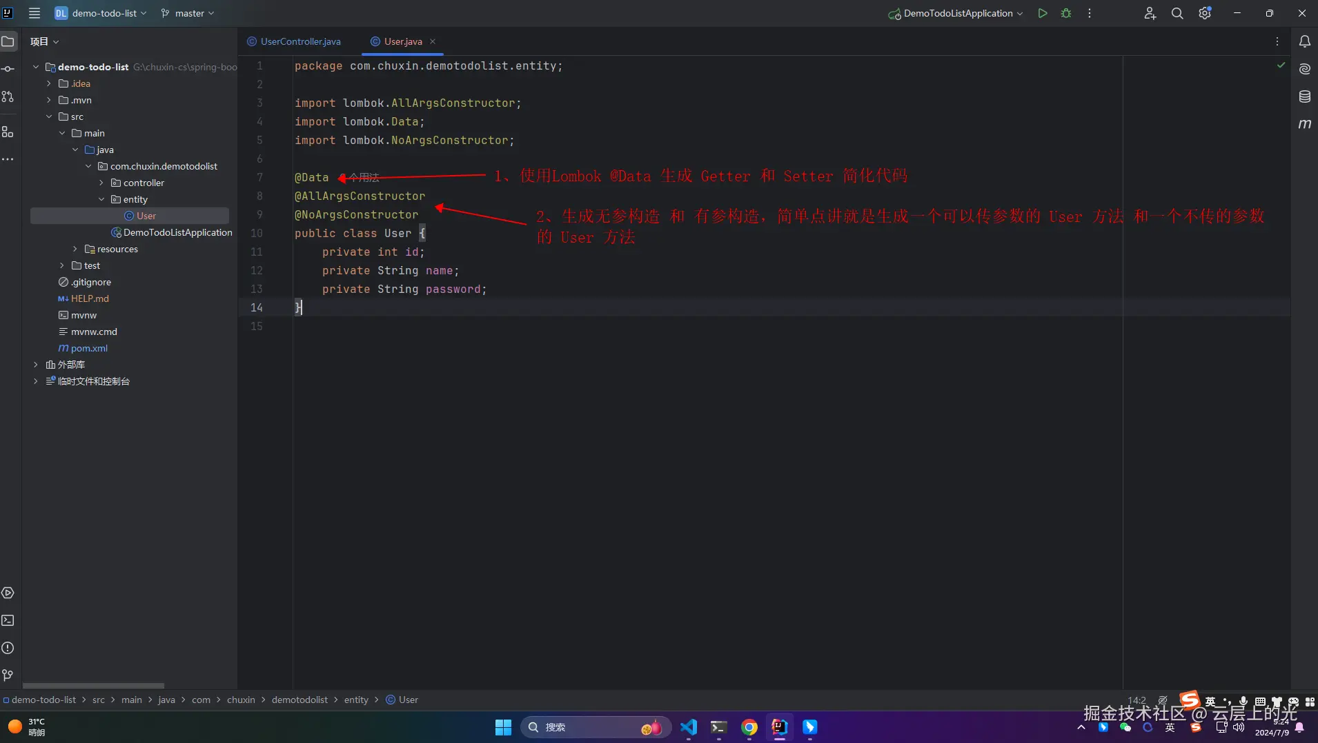1、新建 controller 软件包、并且新建 UserController 文件类