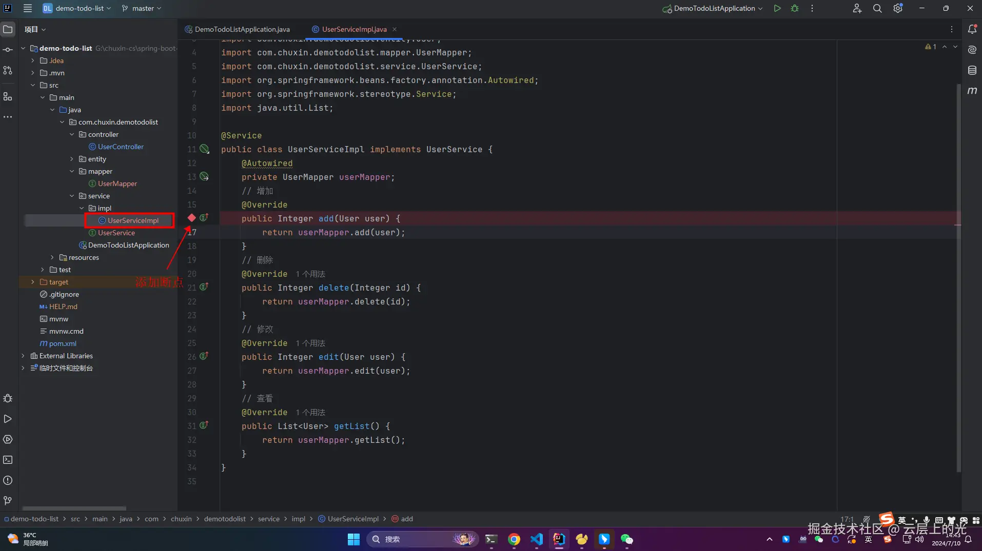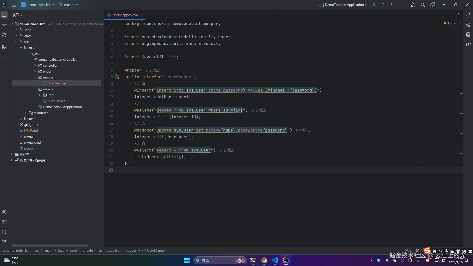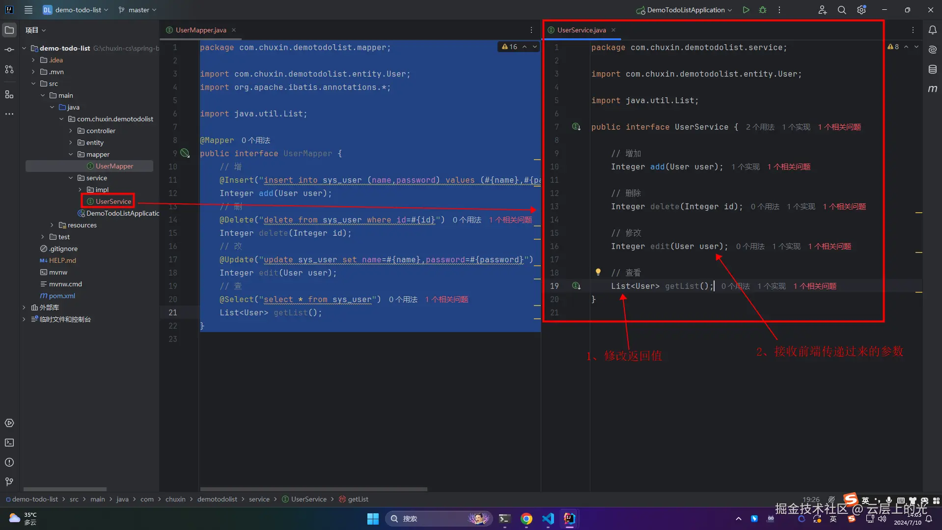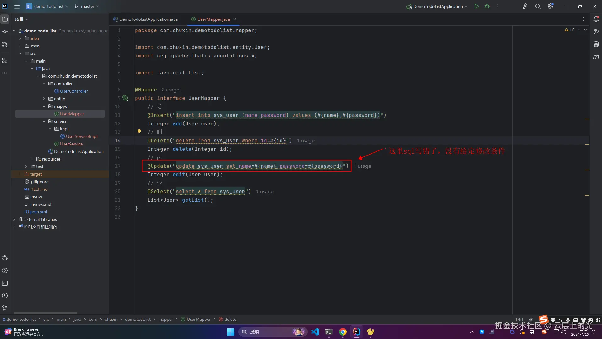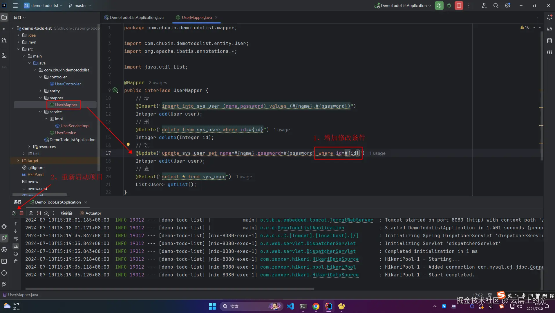 6、改造 UserMapper 接口文件,增加条件,然后重启项目