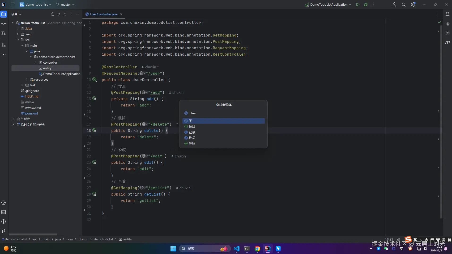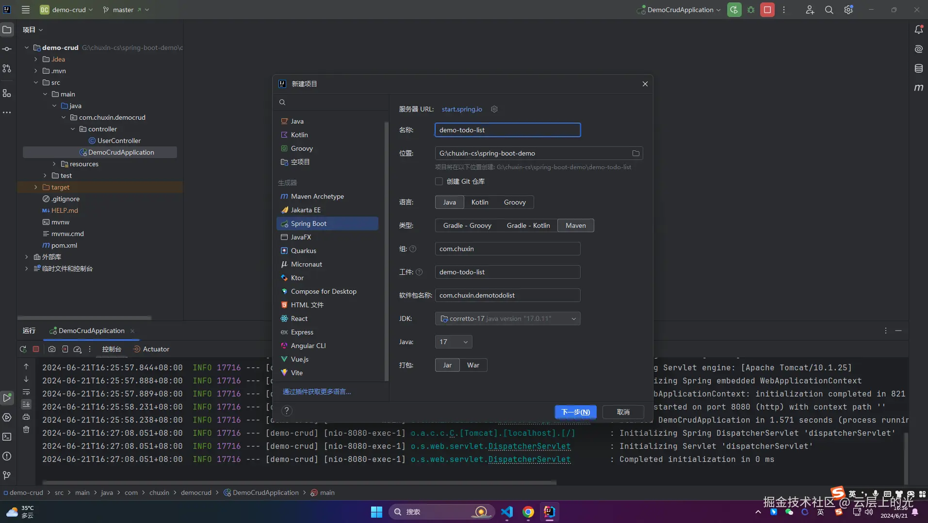 提示:(想了想这里按照项目名称来创建 ,此处创建 demo-todo-list,关于上面 spring-boot-demo 的删除操作多此一举了)