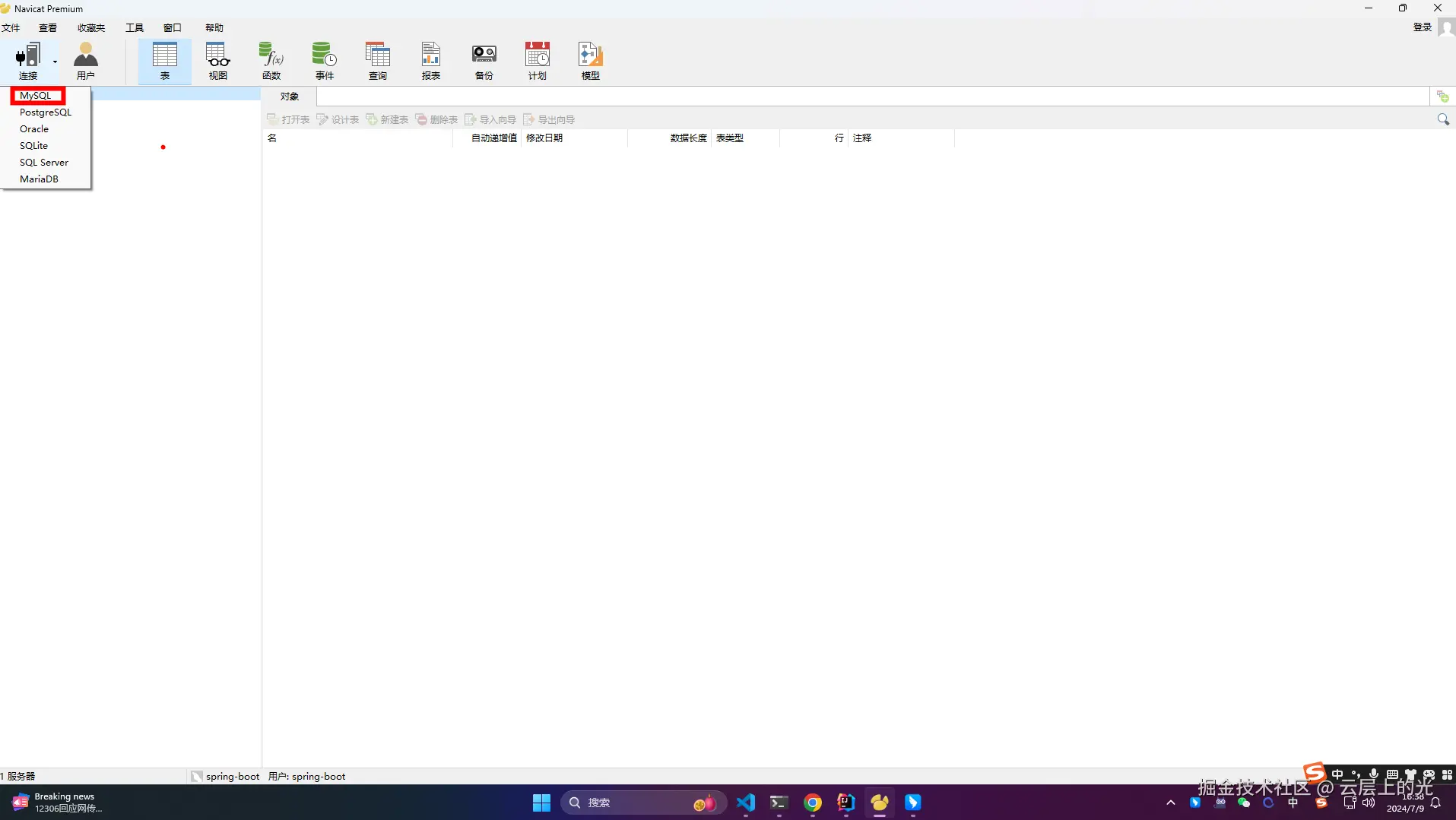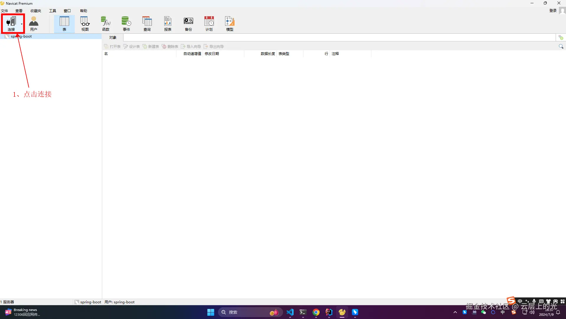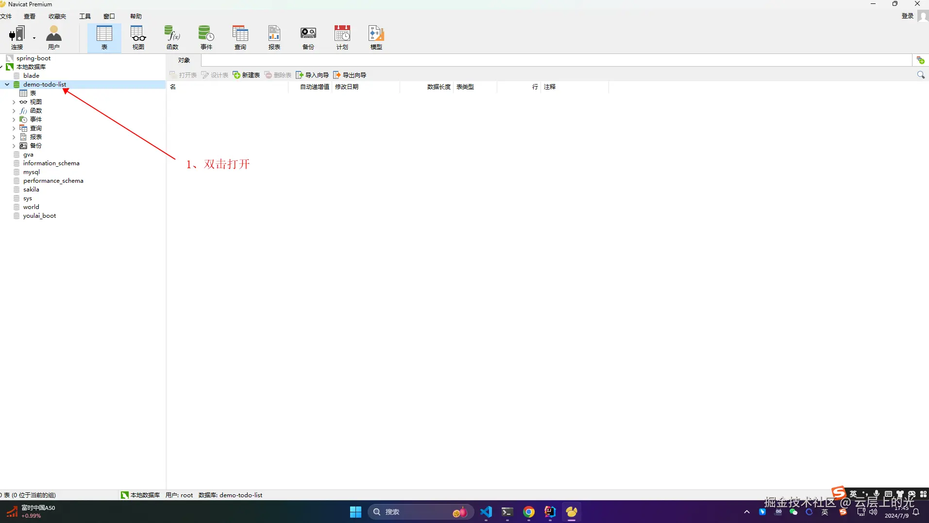 1、打开自己喜欢的数据库图形化工具,当前使用的是 Navicat Premium,下载教程见: