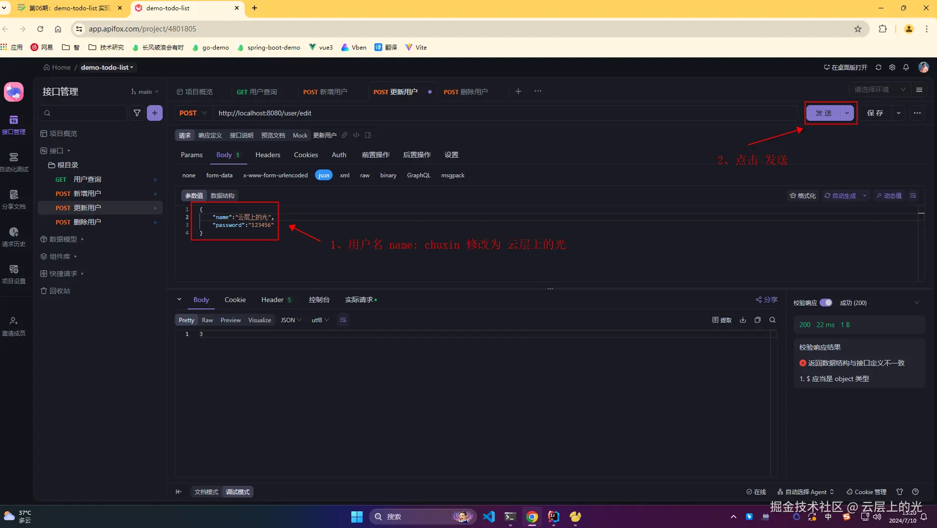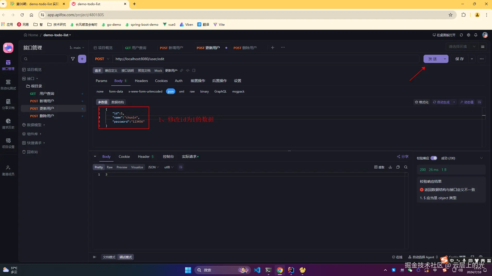 3、点击发送,调用修改用户接口 http://localhost:8080/user/edit