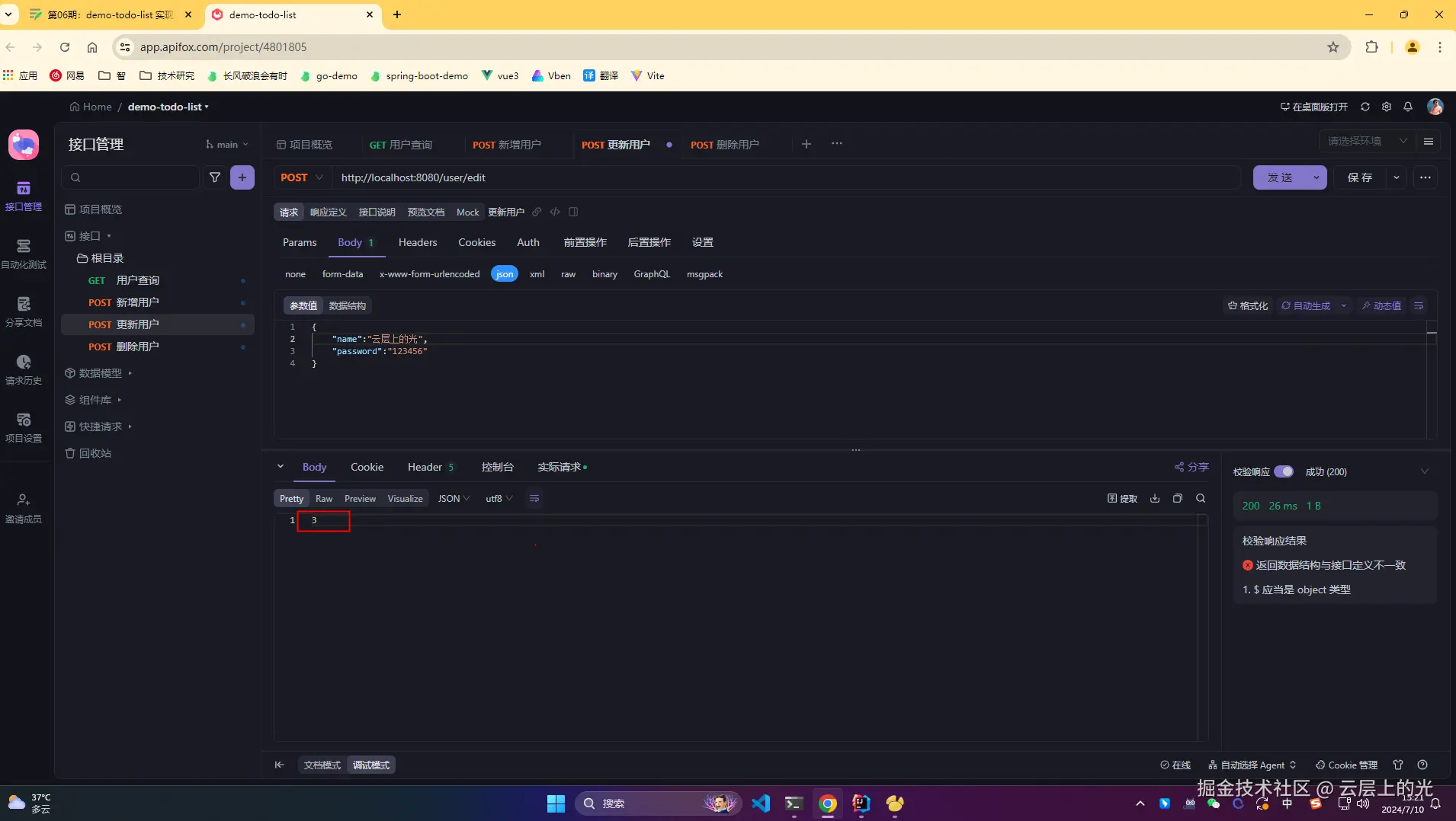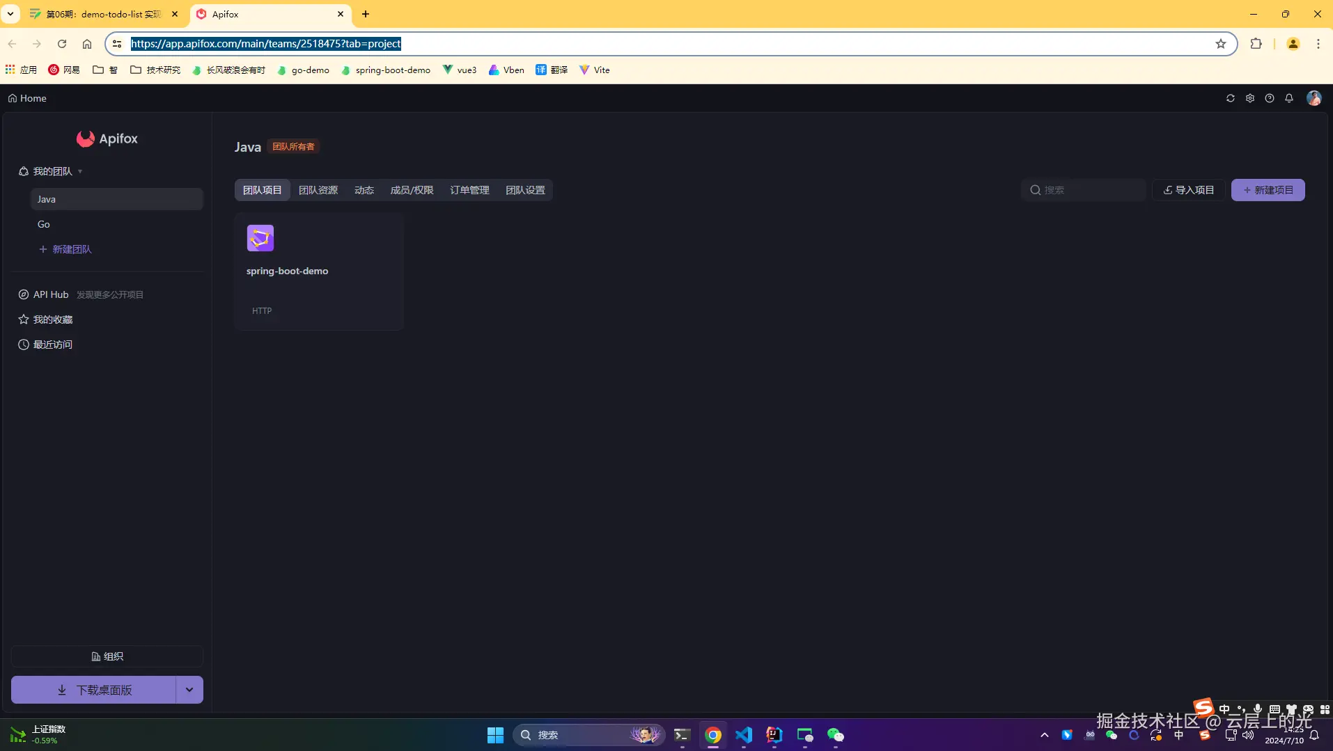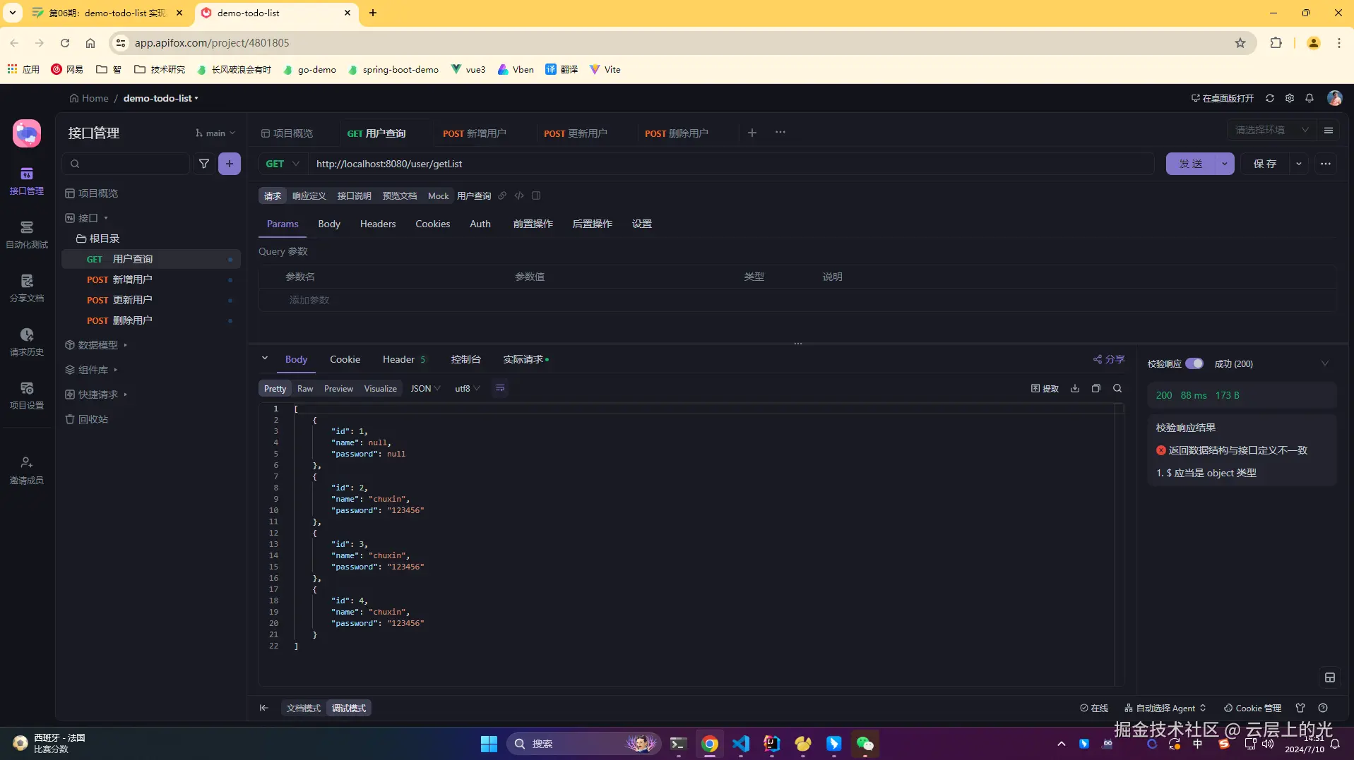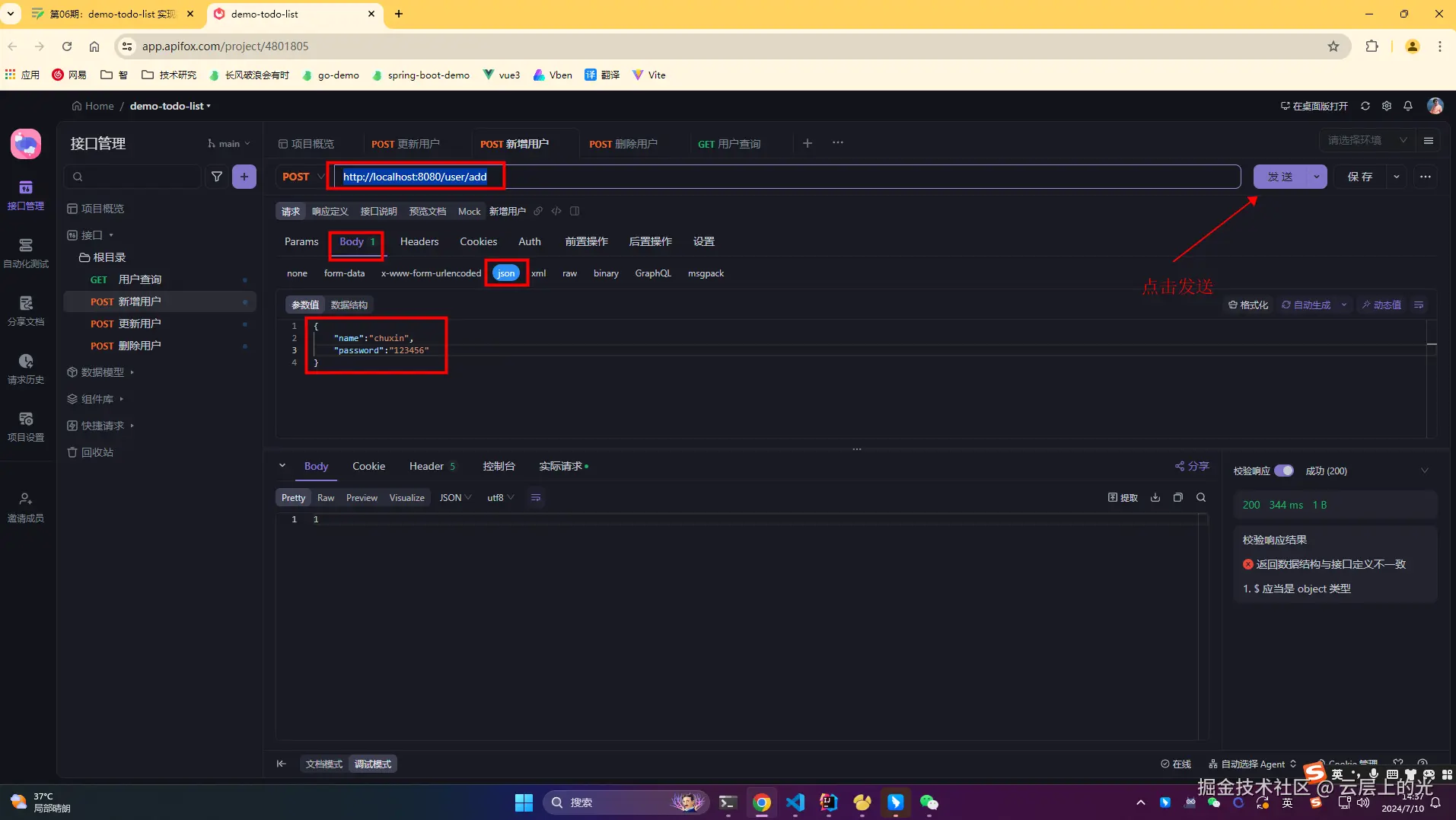 接口测试使用的 Apifox ,可以在线使用 Web 省去安装桌面端步骤