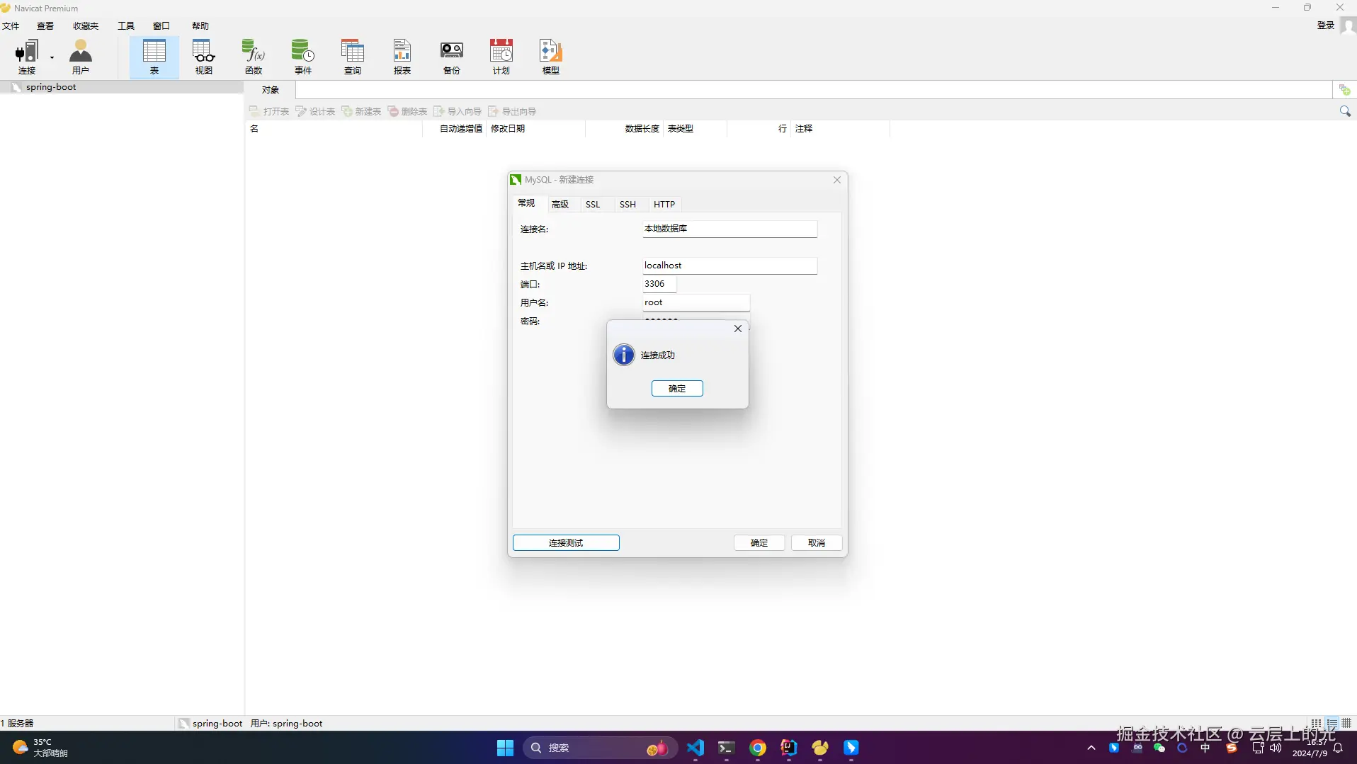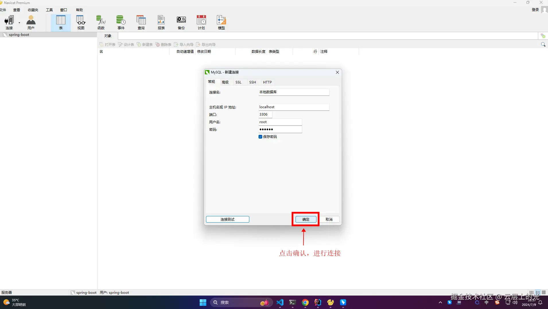6、点击 “确认”,进行本地 Mysql 进行连接