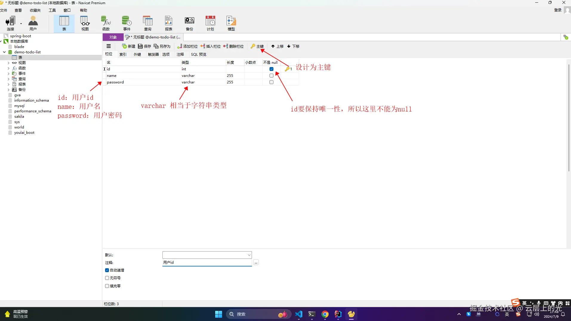 `id` int NOT NULL AUTO_INCREMENT COMMENT '用户id',