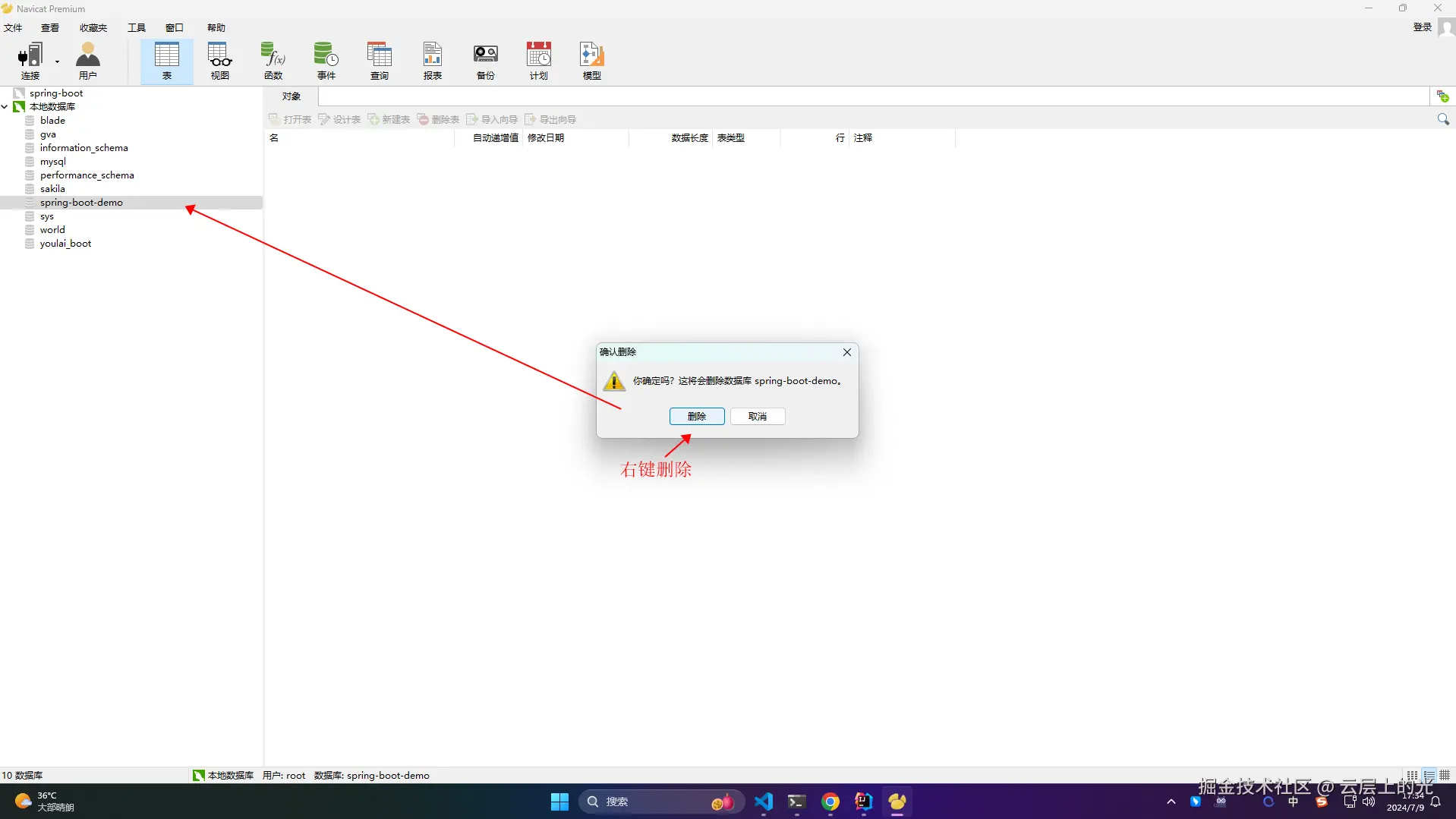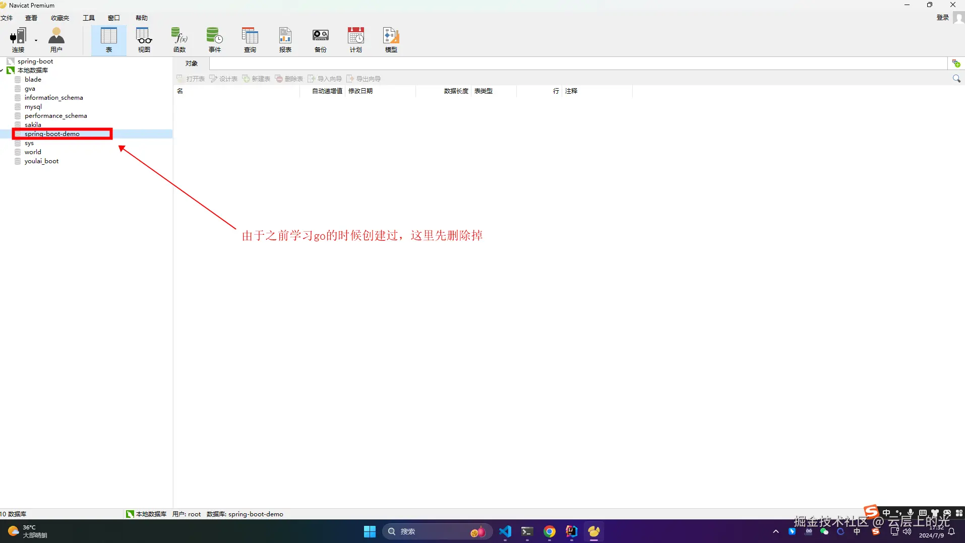 8、由于之前 go 在进行数据库操作时创建过,先删除 spring-boot-demo