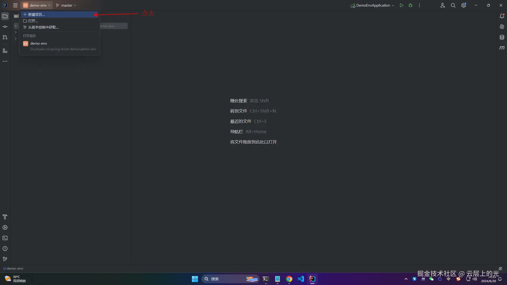 1、点击 “新建项目”,创建项目用来演示 Spring Boot 实现增删改查