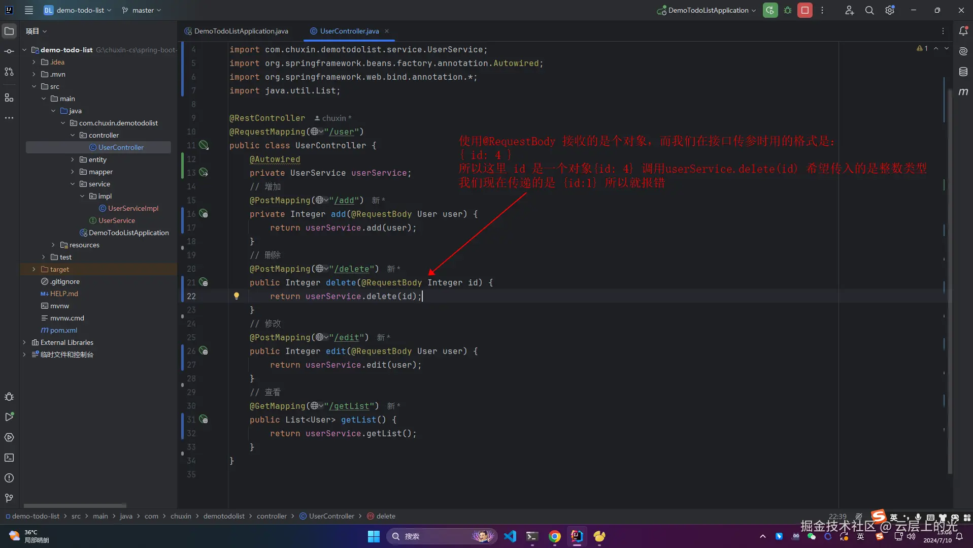所以这里 id 是一个对象{id: 4} 调用userService.delete(id) 希望传入的是整数类型