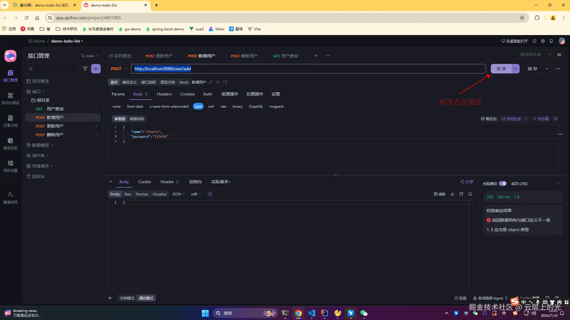 1.1、点击发送,调用新增用户接口 http://localhost:8080/user/add