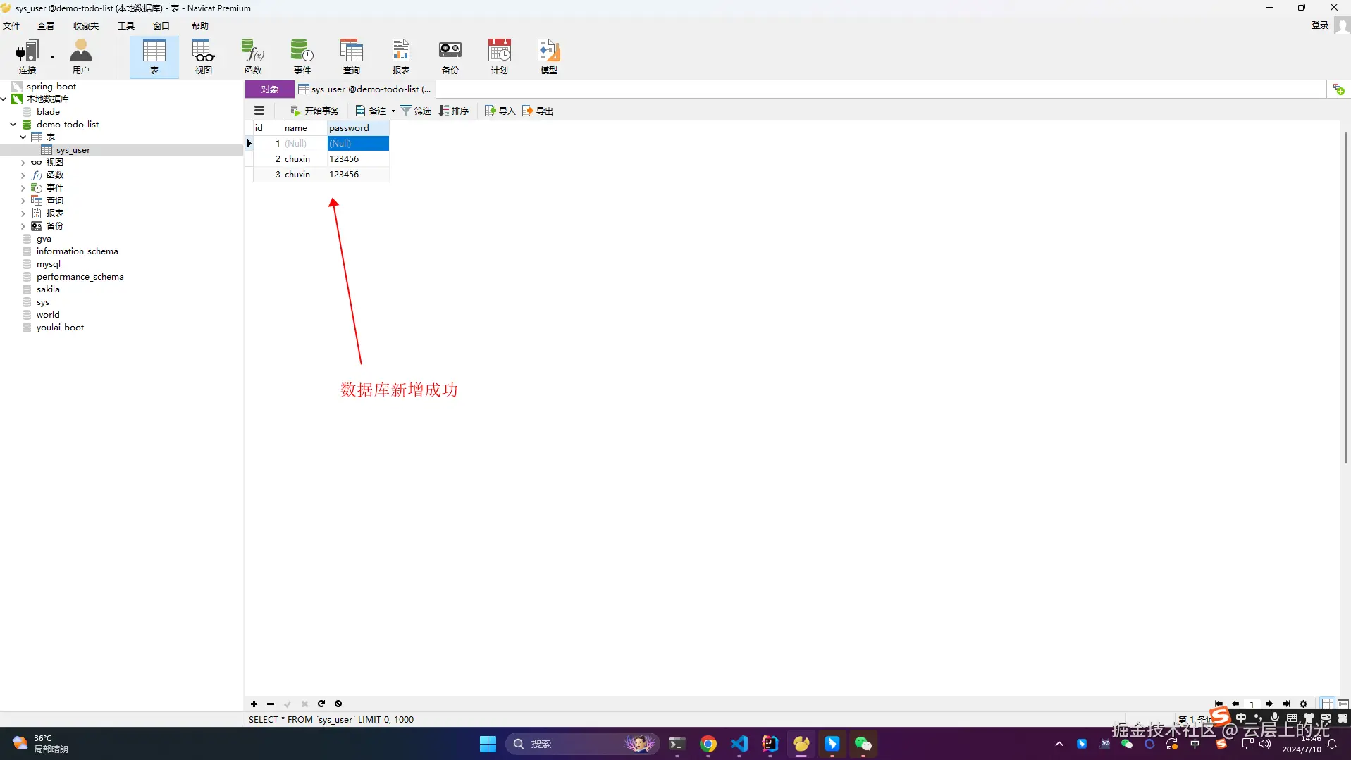 1.8、查看数据库,新增成功,(问题是代码没改动,不知道为什么又好了)